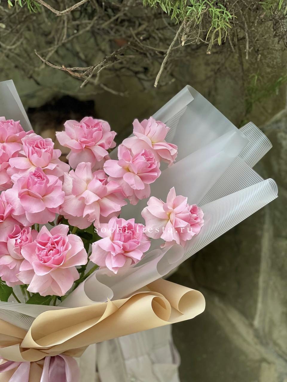 101 кустовая пионовидная роза, лента, дизайнерская упаковка.