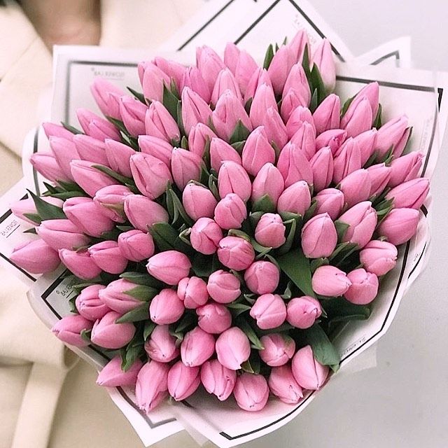 101 розовый тюльпан в белом