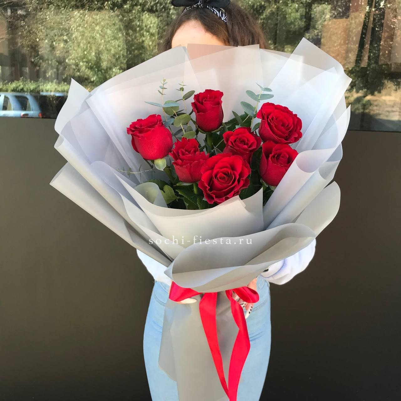 Одиннадцать бутонов кенийской розы собраны в лаконичный букет с комбинированной упаковкой. Красный цвет звучит ярко и уверенно.