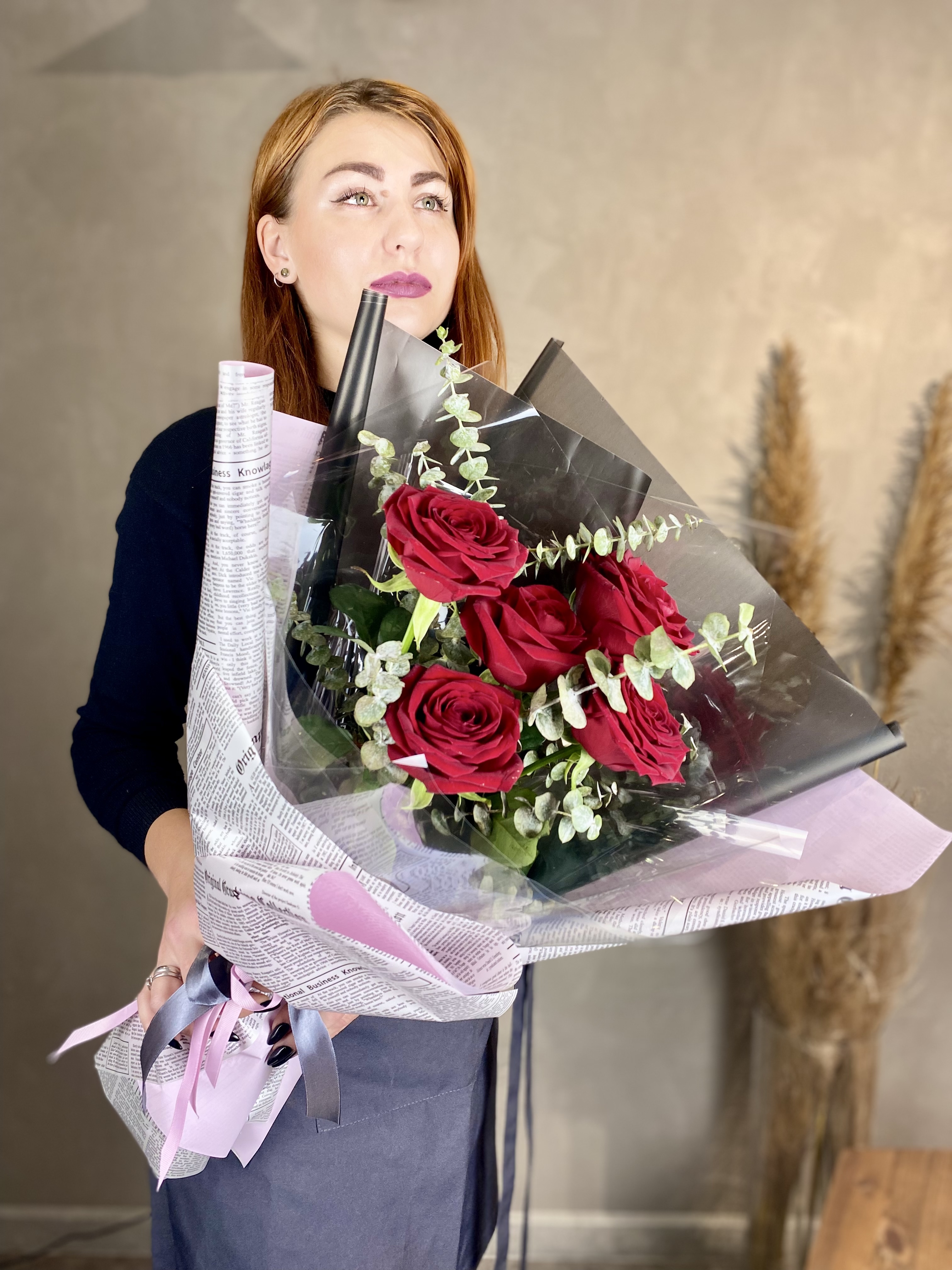Тридцать пять кенийских роз в лаконичной упаковке подходят для современного интерьера и динамичного ритма жизни. Букет выглядит актуально и вписывается в минималистичную эстетику.