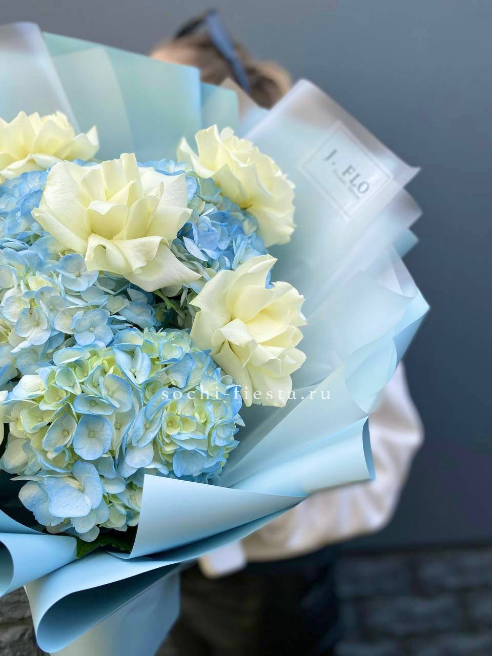 гортензия - 5 шт., лента, дизайнерская упаковка.