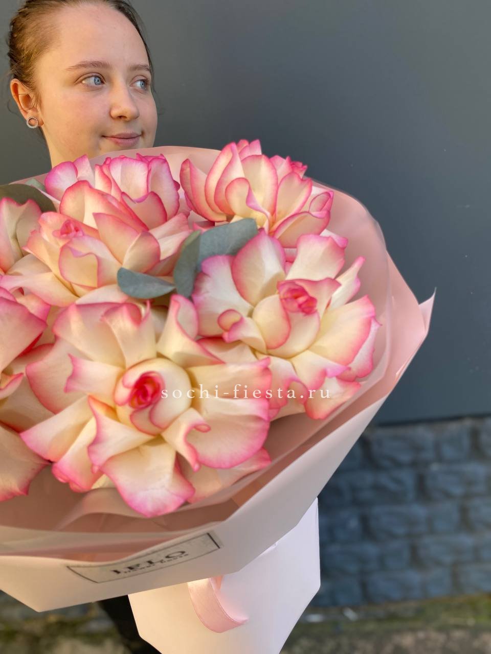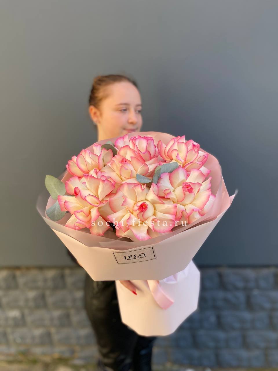 вывернутые розы, эвкалипт, лента, авторская упаковка.