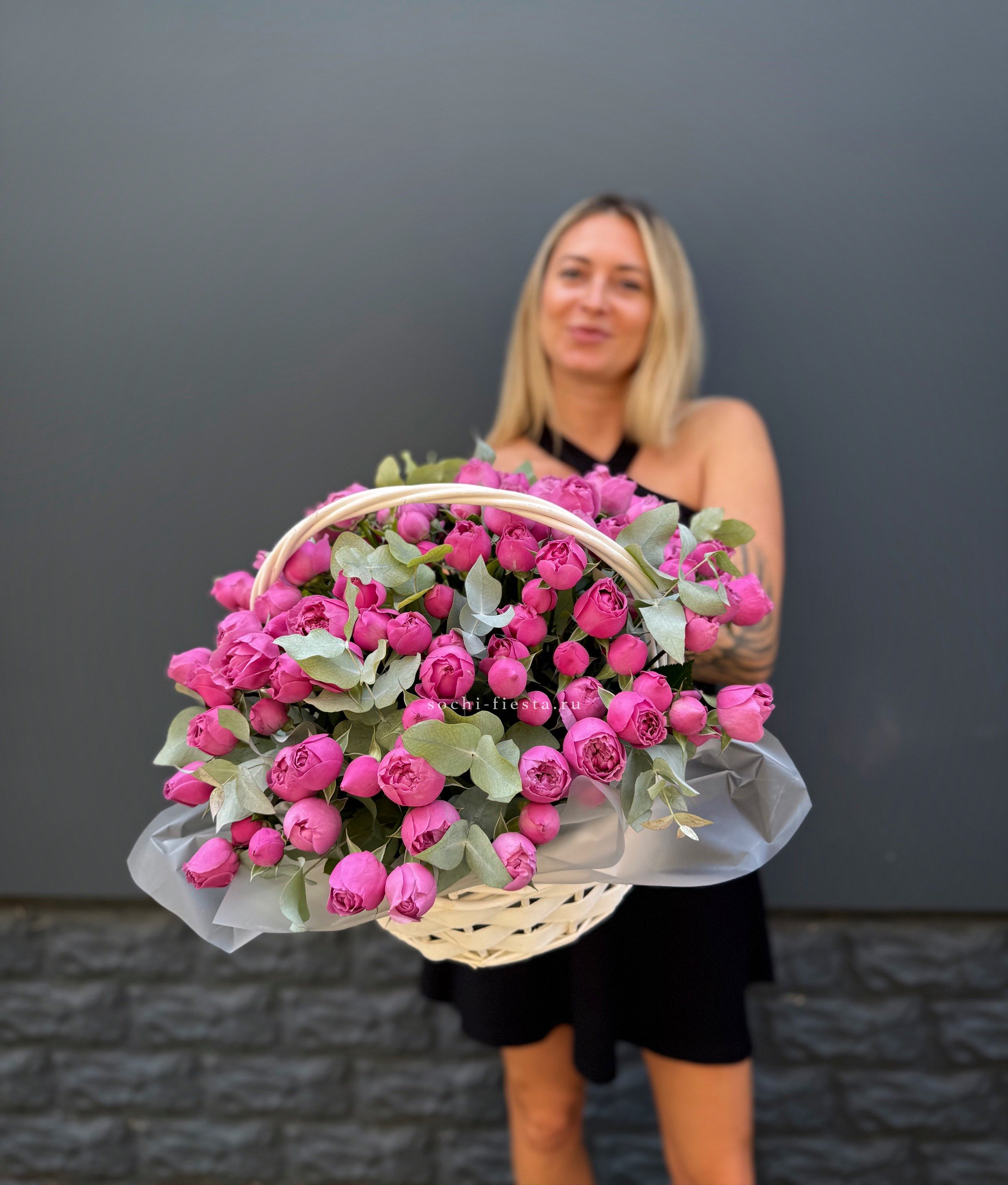 Этот пышный авторский букет в красно-розовых тонах представляет собой гармоничное сочетание страсти и нежности.