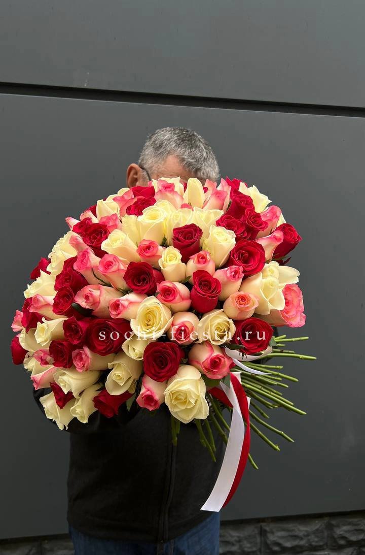 Мы работаем только со свежими цветами — букеты радуют от 7 до 14 дней и дольше при правильном уходе.