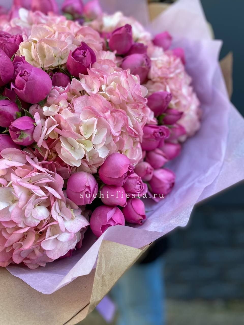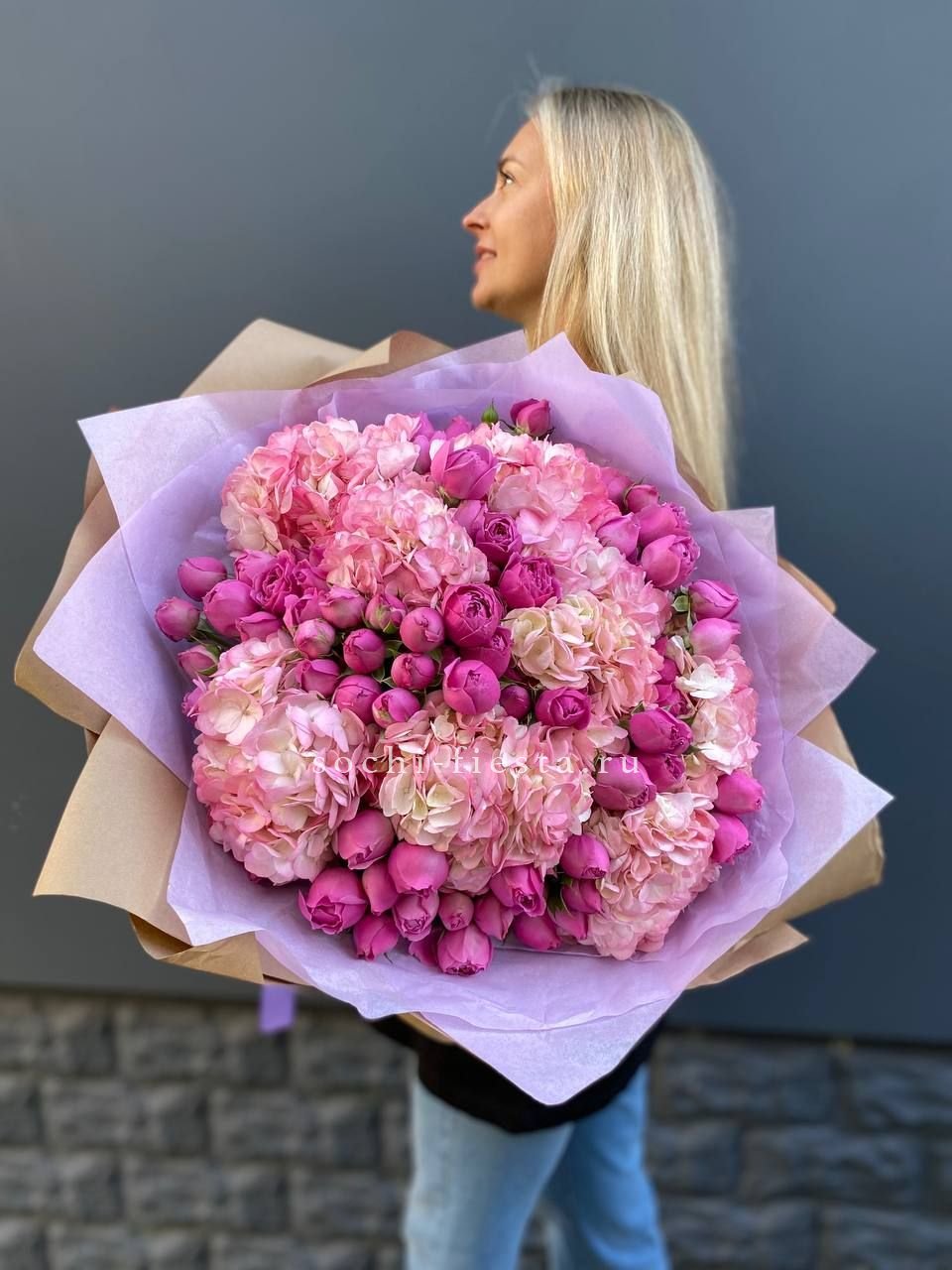 гортензия- 29 шт., дизайнерское оформление По желанию заказчика, композицию можно оформить в корзину.