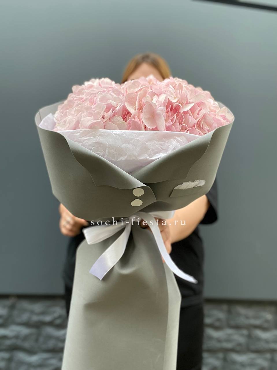 гортензия 15 шт., лента, дизайнерская упаковка.