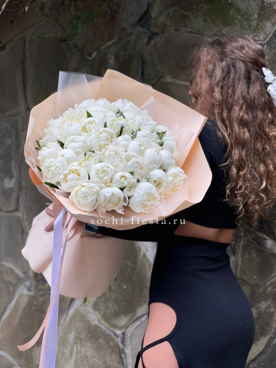 Белоснежные соцветия образуют чистую композицию с мягким ритмом. Тридцать пять головок раскрываются постепенно и сохраняют свежесть долгое время.