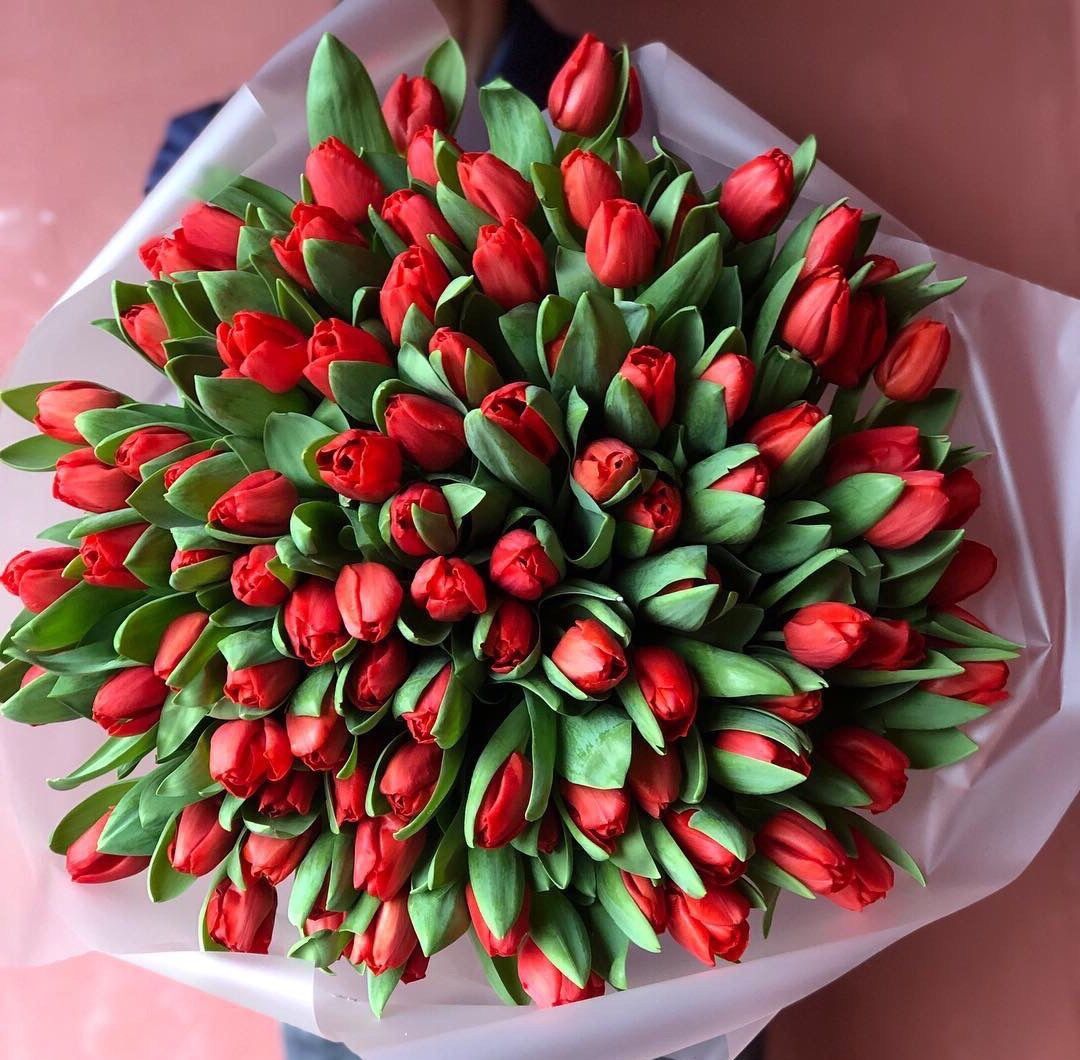Тридцать семь тюльпанов создают яркое цветовое пятно в любом интерьере. Крафтовая упаковка оставляет композицию открытой и подчёркивает графику стеблей. Букет выглядит свободно и современно.