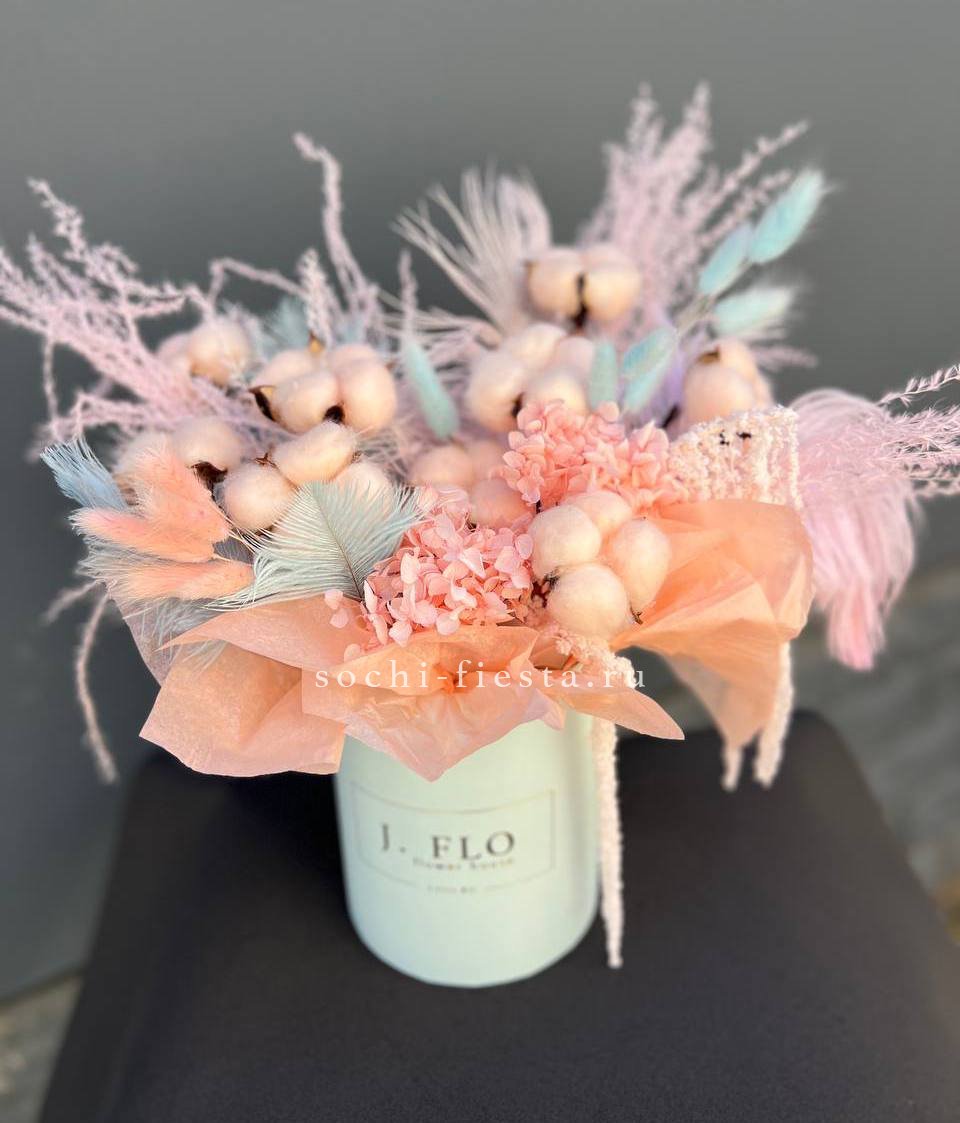 Семь белоснежных соцветий собраны в плотный объёмный силуэт. Гортензии Flakes создают ощущение летней свежести и спокойной гармонии. Монобукет для тех, кто ценит чистоту формы и природную красоту.