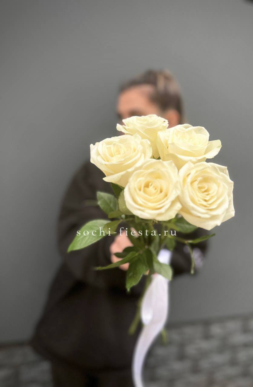 Для заказа товара "Букет 5 белых роз " с доставкой в Воронеже нажмите в корзину