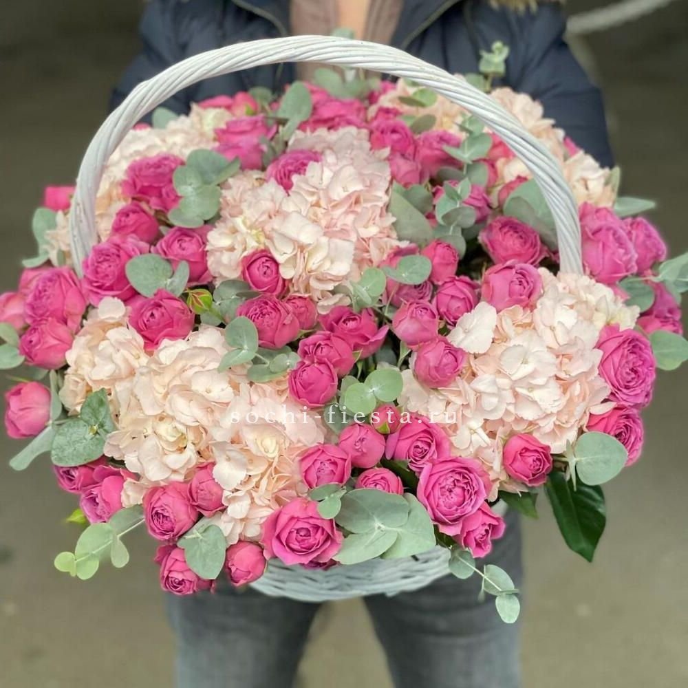 Для заказа товара "Корзина с гортензией и Мисти Баблс" с доставкой в Воронеже нажмите в корзину