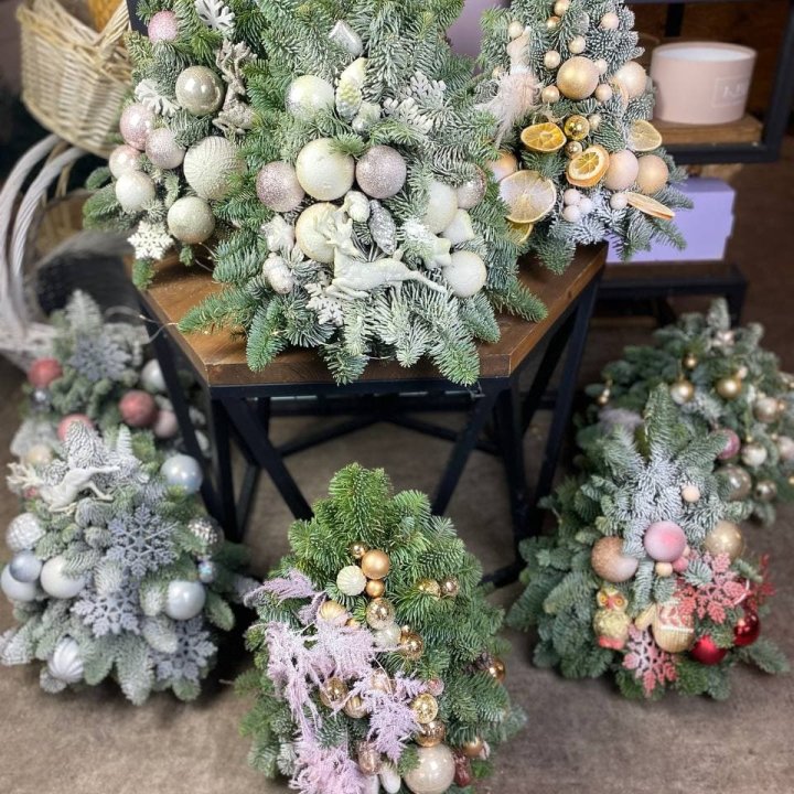 Новогодние композиции — это праздничные декоративные украшения, созданные из различных материалов и элементов, предназначенные для украшения интерьера, праздничных столов, входных групп и других пространств в преддверии Нового года и Рождества. Они создают атмосферу уюта, волшебства и торжественности.