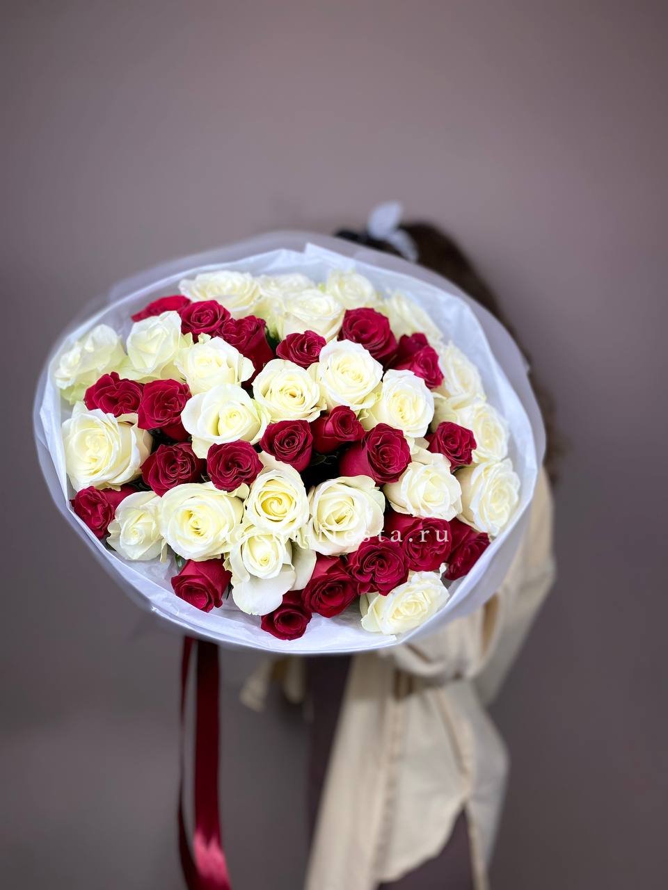 Букет из красных белых 45 роз