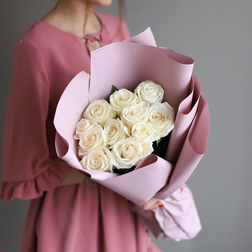 7 белых роз, дизайнерская упаковка.