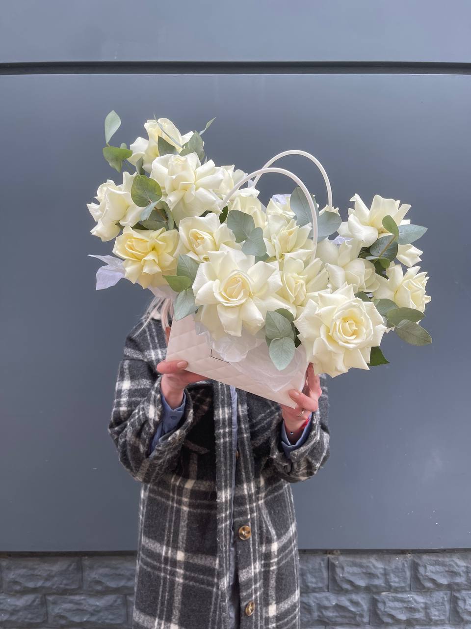 Семь роз сорта Иммерсив в лаконичной дизайнерской подаче. Чистый белый цвет и графичная форма создают спокойное, почти медитативное впечатление. Для тех, кто предпочитает точность.