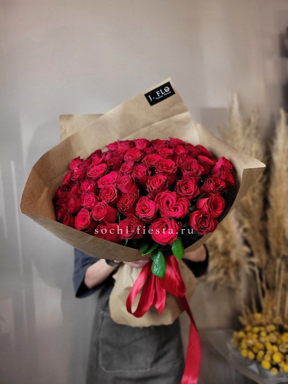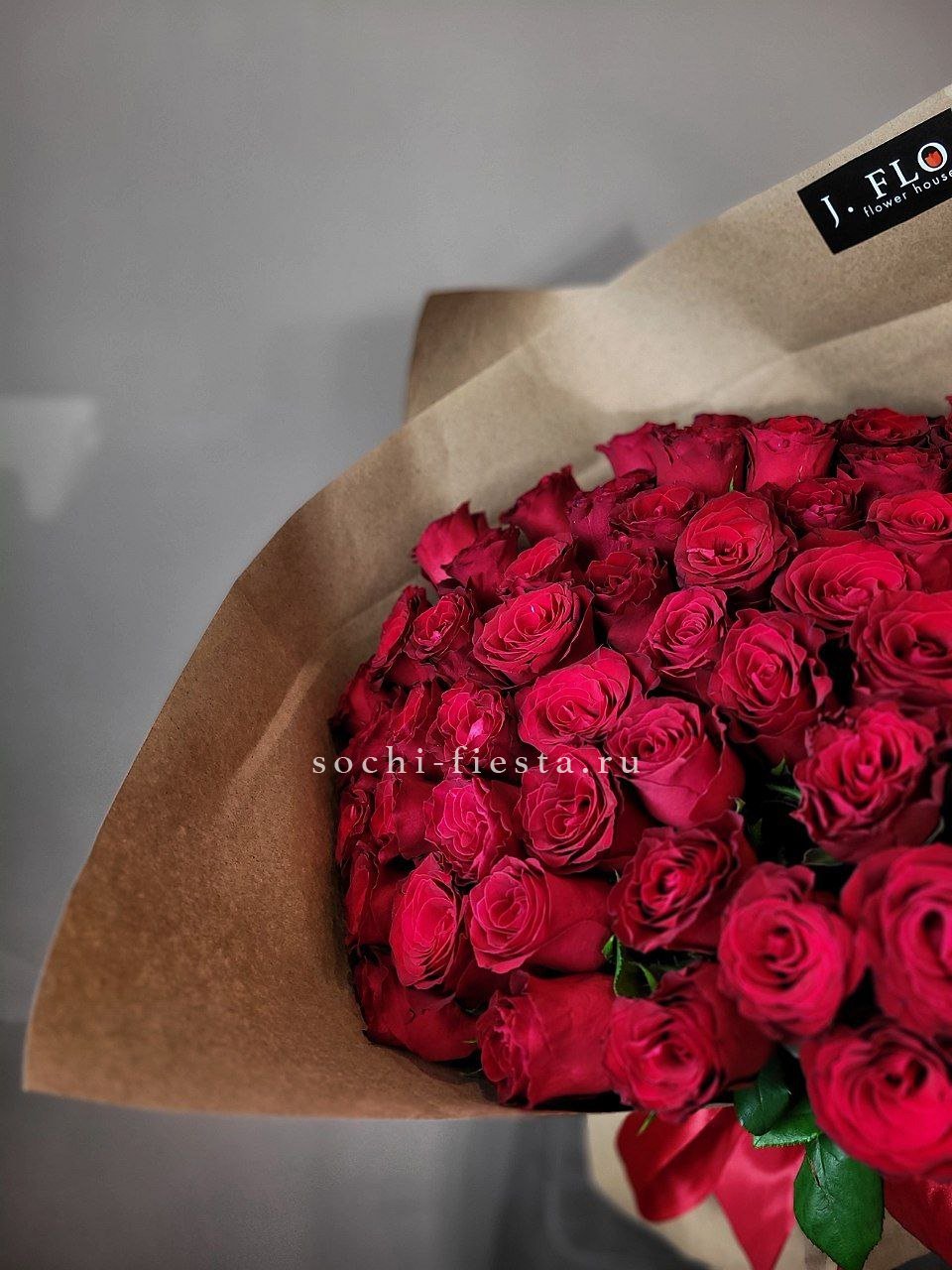 Алые розы с бархатистыми лепестками в авторской упаковке. Вы выбираете количество стеблей и получаете букет, который говорит без слов о силе чувств.