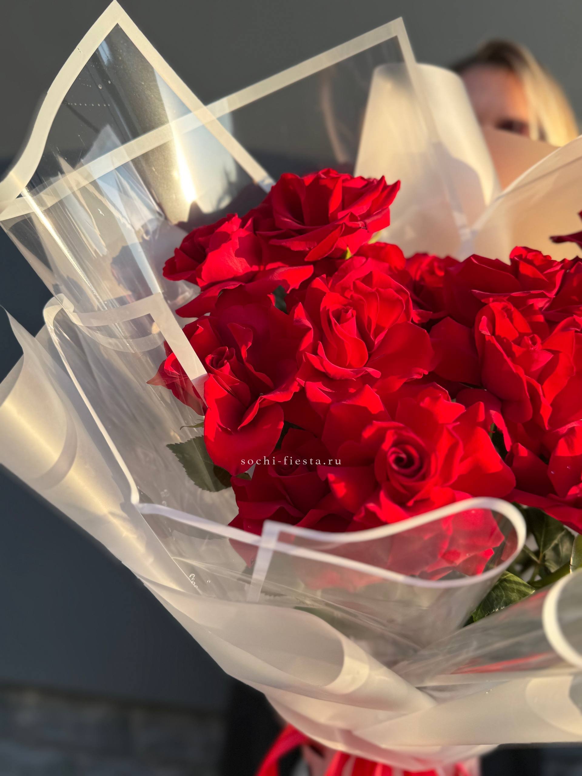 Одиннадцать белых бутонов в лаконичной сборке. Светлые головки роз раскрываются постепенно, сохраняя свежесть и аккуратность формы на протяжении долгого времени.