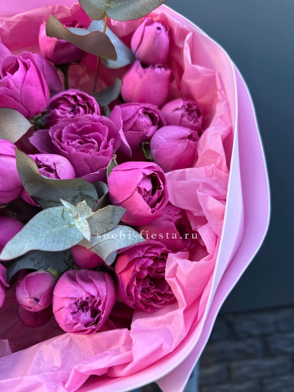 9 пионовидных кустовых роз Lavender, лента, тишью, фоамиран.