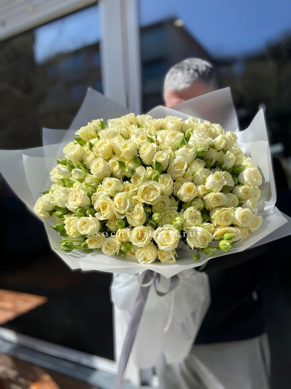 минимальный состав: кустовые розы 31шт., лента, упаковка на выбор.