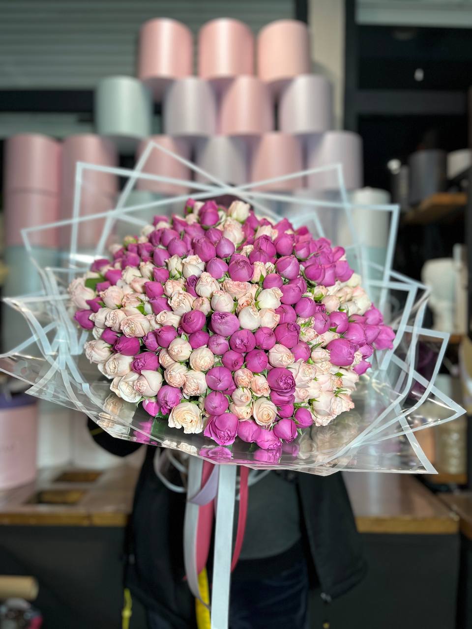 Мы работаем только со свежими цветами — букеты радуют от 7 до 14 дней и дольше при правильном уходе.