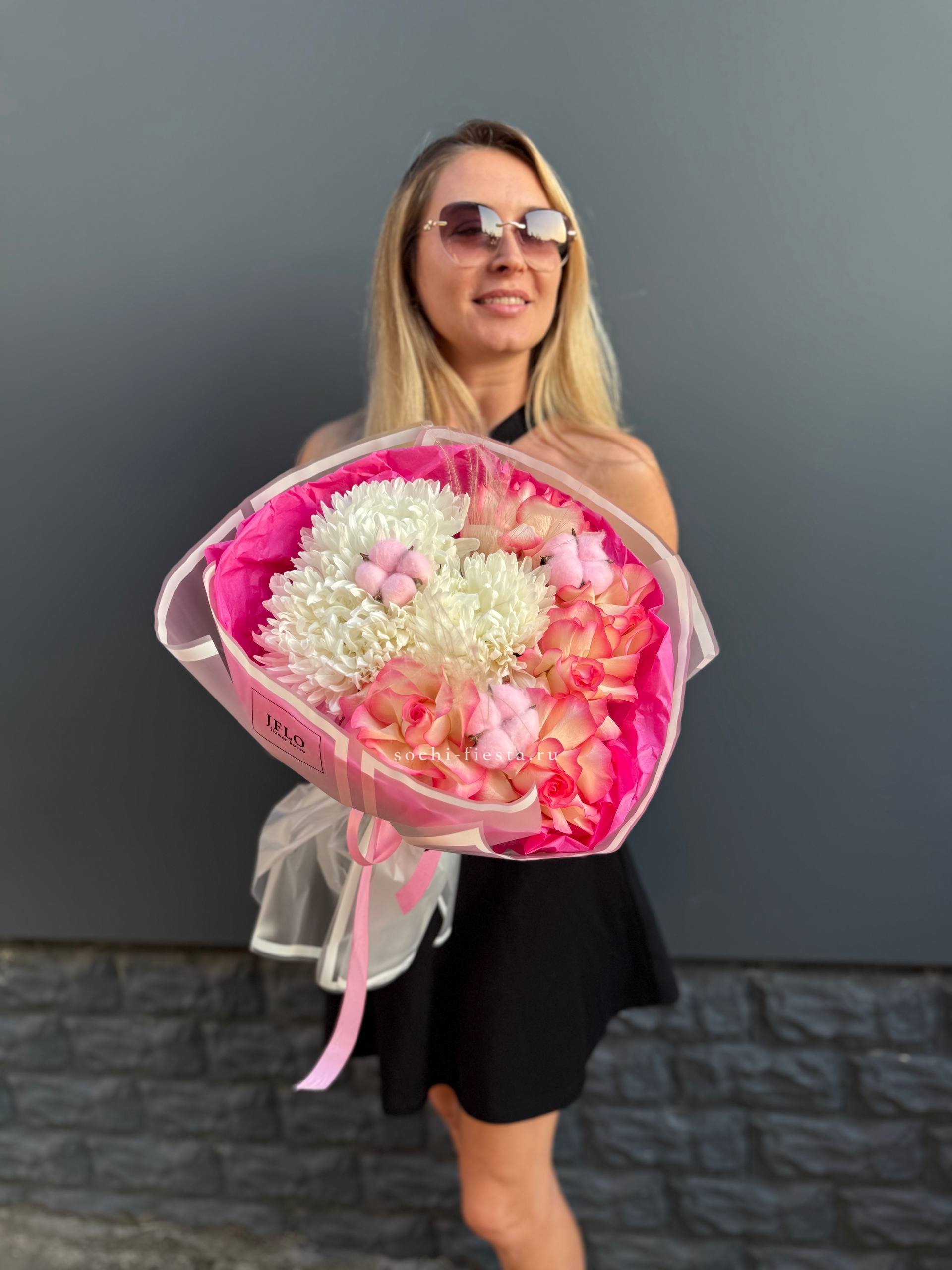 Спасибо большое за букет!!! Дочь в восторге!!! Цветок свежий, пахнет, упаковка красивая!!!