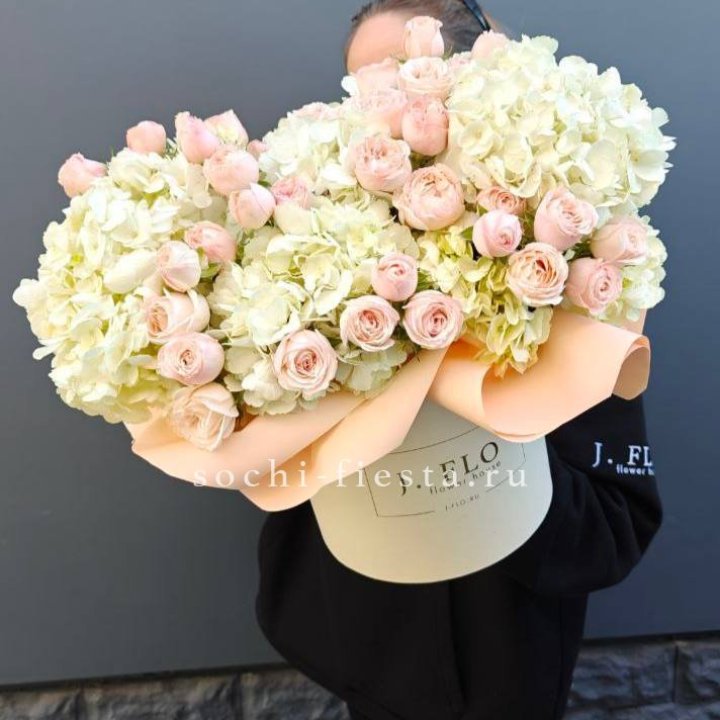Пионы в сезон (май-июнь) — второй по популярности формат. Sarah Bernhardt, Coral Charm, Bowl of Cream. Моно-букет из 25 пионов или смешанная композиция. В Воронеже пионы часто заказывают заранее, запас срезки ограничен местной логистикой.