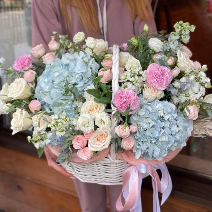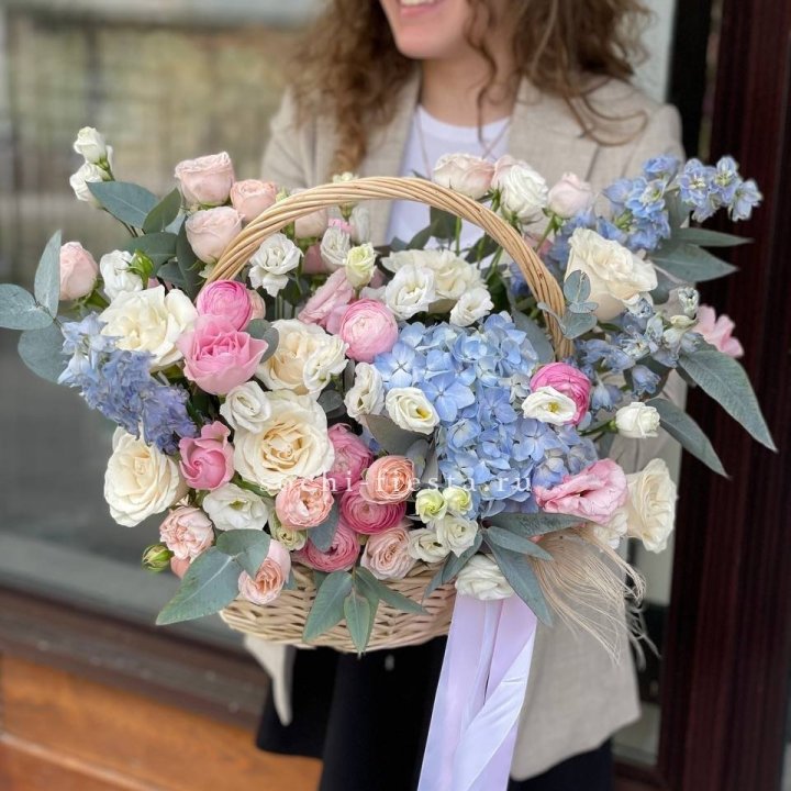 Выписка из роддома — пастельные тона в шляпной коробке. Школьные выпускные — отдельный большой сегмент весной: букеты для учителей, небольшие букеты для выпускников.