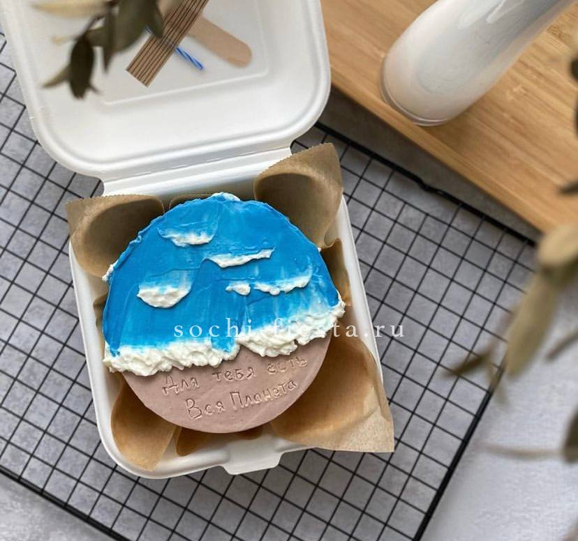 Светлая поверхность с мазками крема и декором в виде бабочек создаёт летнее настроение. Торт сочетает воздушность формы и плотность начинки на выбор из трёх вкусов.
